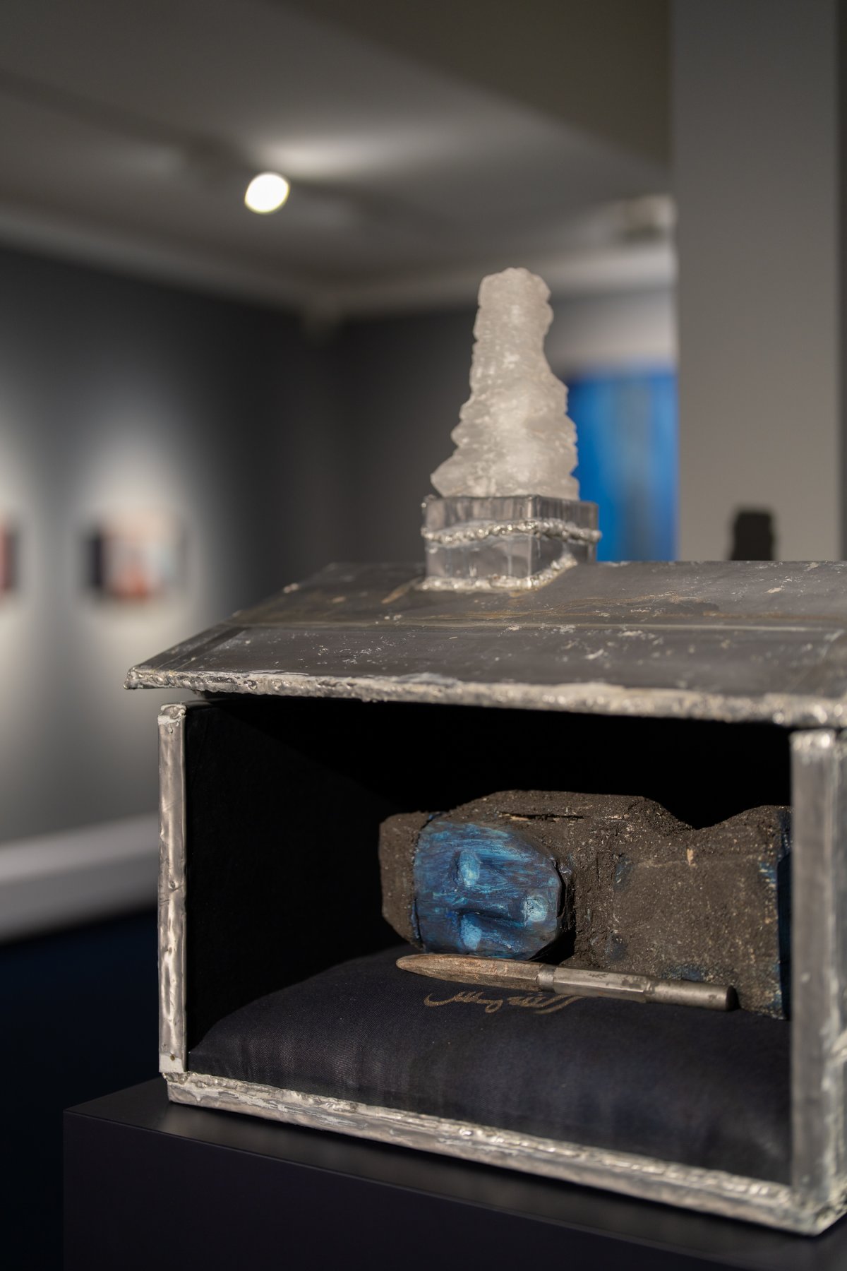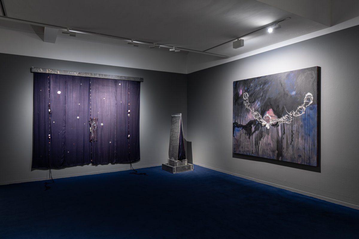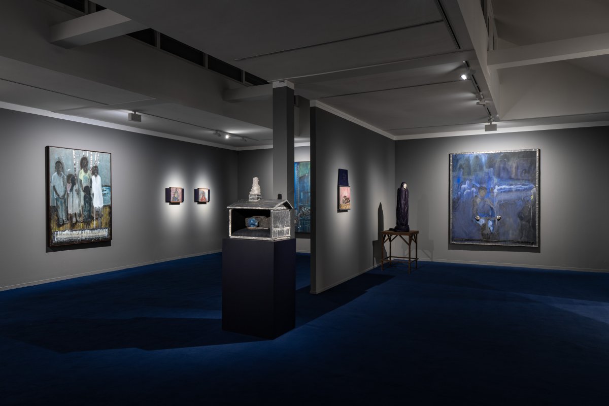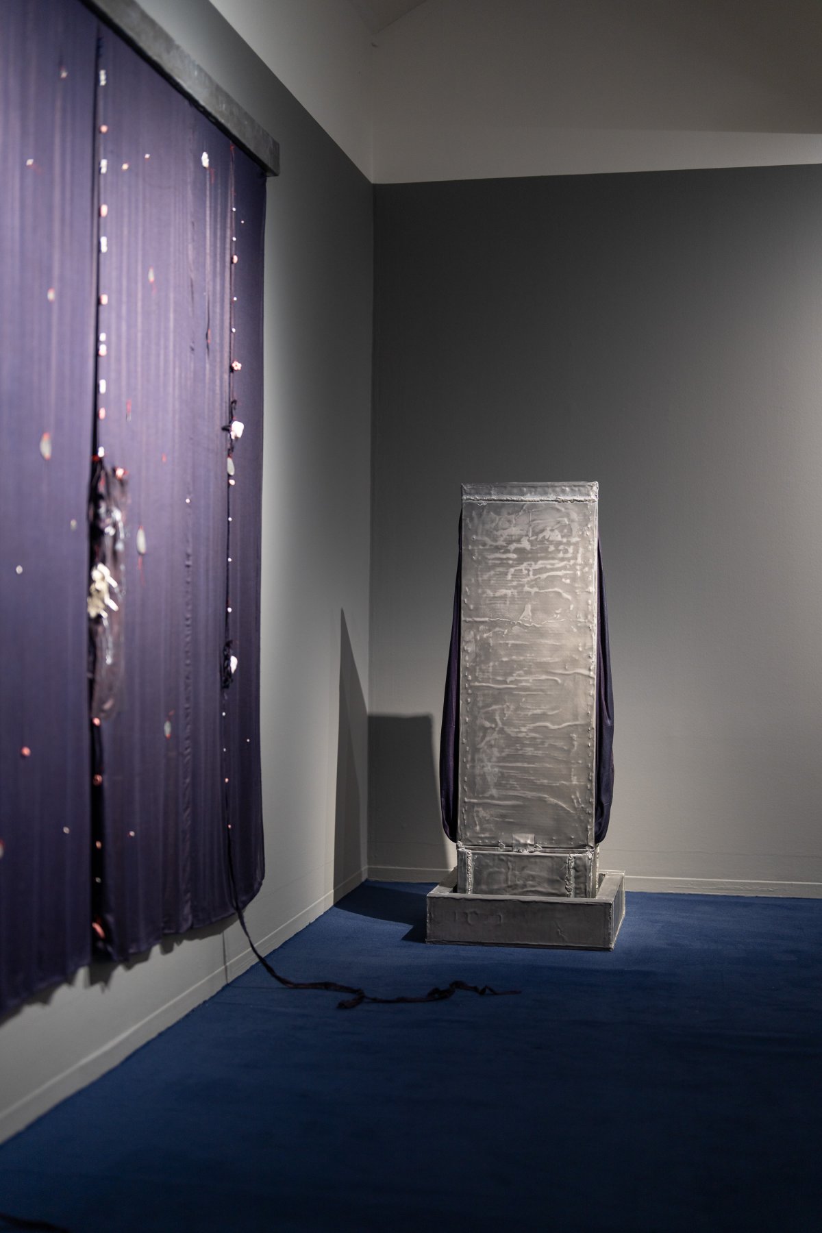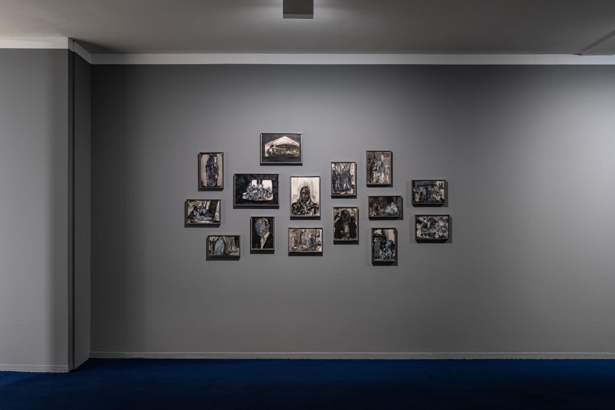 Eddib’s work centers the humanity, dignity, and resilience of these often misrepresented communities, while also acknowledging their vulnerabilities. By depicting fragments of seemingly ordinary yet frequently overlooked domestic scenes and street settings, he brings those at the margins to the center stage. The result is an immersive, symbolically charged material assemblage. The gallery space is populated by house-like sculptures that evoke both an urban neighborhood and questions of belonging and safety. Oil paintings layered with shimmering trajectories of melted tin, alongside dark ink drawings on paper infused with lead, articulate narratives that move beyond reductive ghetto stereotypes.