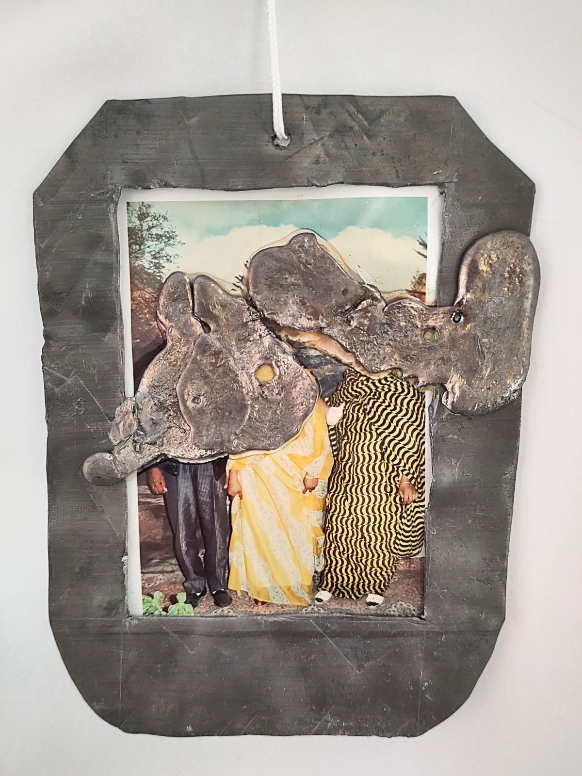 Includes four paintings by the artist as well as a tent installation made of Moroccan fabrics, containing lead amulets with photographs of Sahrawis.